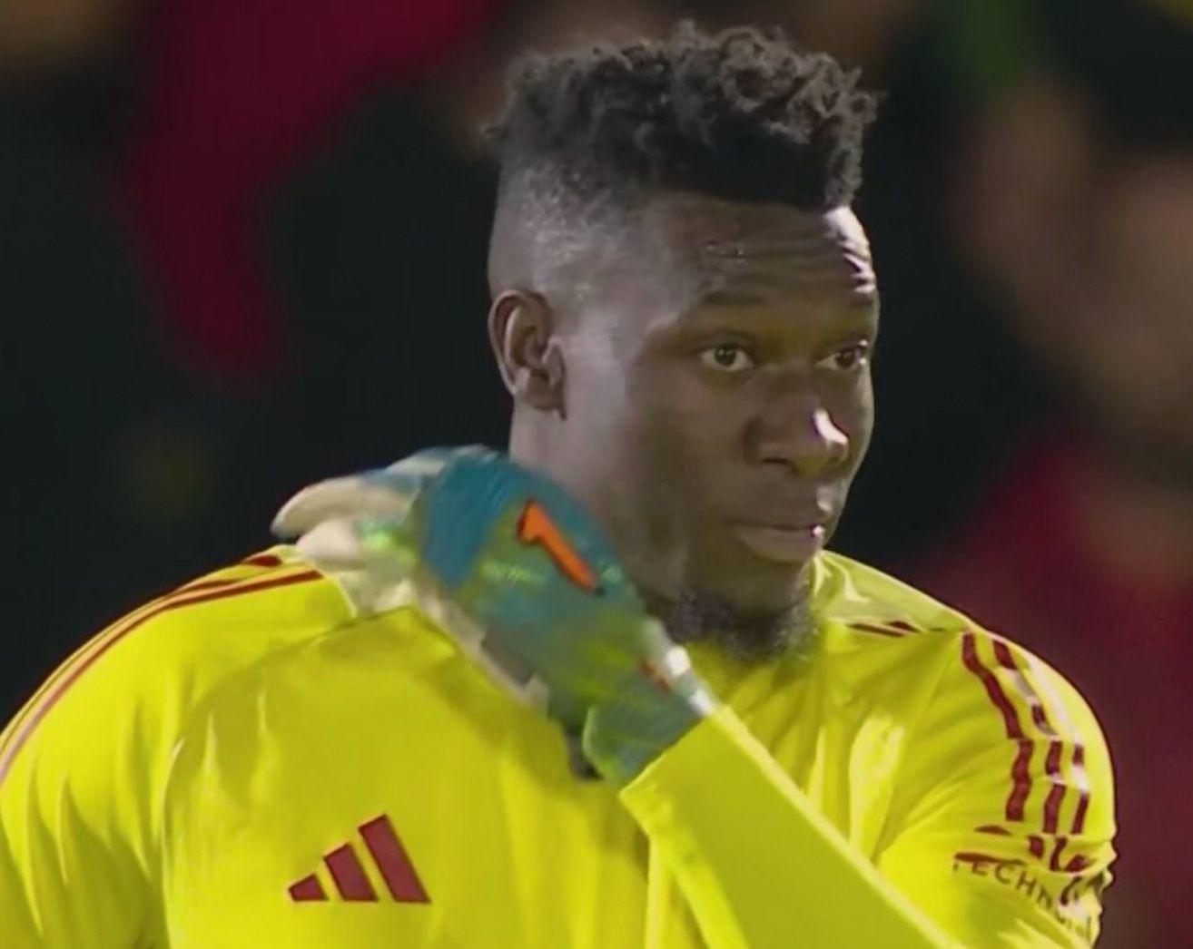 此后,曼联在下半场连扳两球,比赛来到点球大战。奥纳纳本可以成为救世主,但他再一次演砸。对手罚了13个点球,奥纳纳只扑出1个。最终,对手在点球大战中12-11胜出。